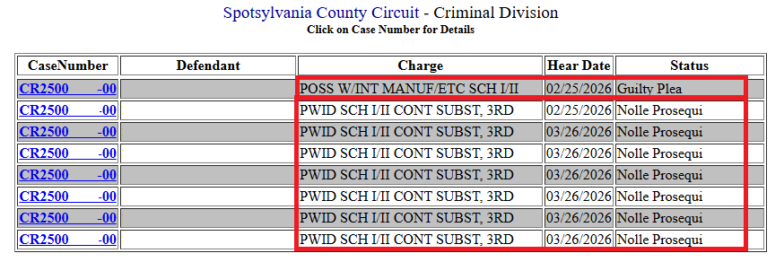 2023-03-16: Felony Possession with Intent to Distribute Schedule I/II Controlled Substance amended to Drug Possession
